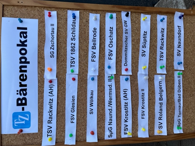 In der Halbzeitpause der Nordsachsenligapartie zwischen dem TSV 1862 Schildau und dem SV Mügeln/Ablaß zog Leni Parthaune die Achtelfinalspiele im TZ-Bärenpokal. Spieltermin ist der 24./25. September. Die Zehnjährige spielt in der E-Jugend des TSV. Bereits in der zurückliegenden Runde musste die Hälfte der Nordsachsenligisten, darunter auch Pokalverteidiger FSV Blau-Weiß Wermsdorf, die Segel streichen. Immerhin zwei Alt-Herren-Teams befinden sich noch in der Runde der letzten 16 Teams.